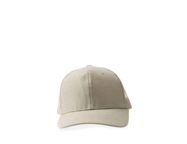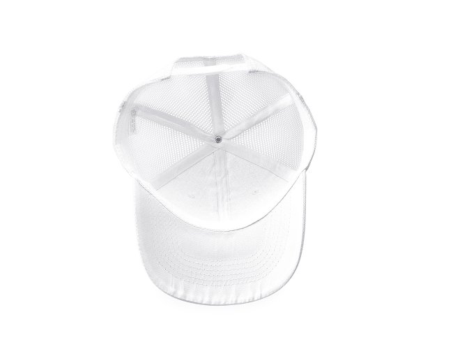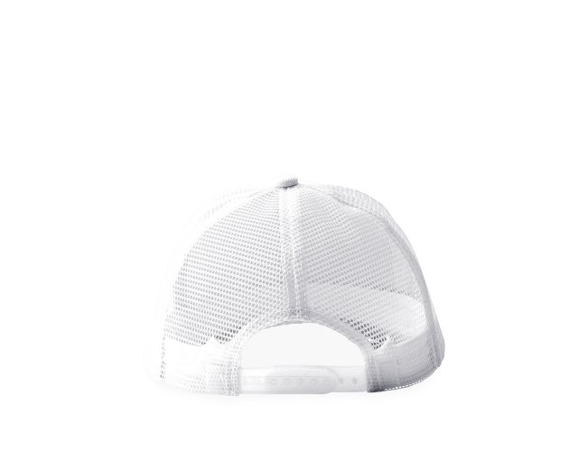 Boné de aba curva confeccionado em poliéster e tela respirável em nylon.
