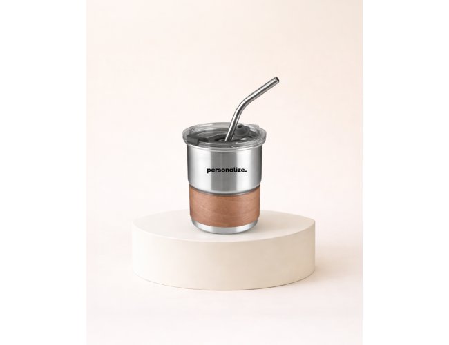 Copo de parede simples em aço inox 304 com capacidade de 250ml, com canudo em inox.